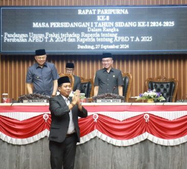 bdgtoday.com / Fraksi Gabungan Partai NasDemi dan Partai Demokrat (Fraksi Nasional Demokrat) DPRD Kota Bandung menyampaikan Pandangan Umum terhadap Raperda...