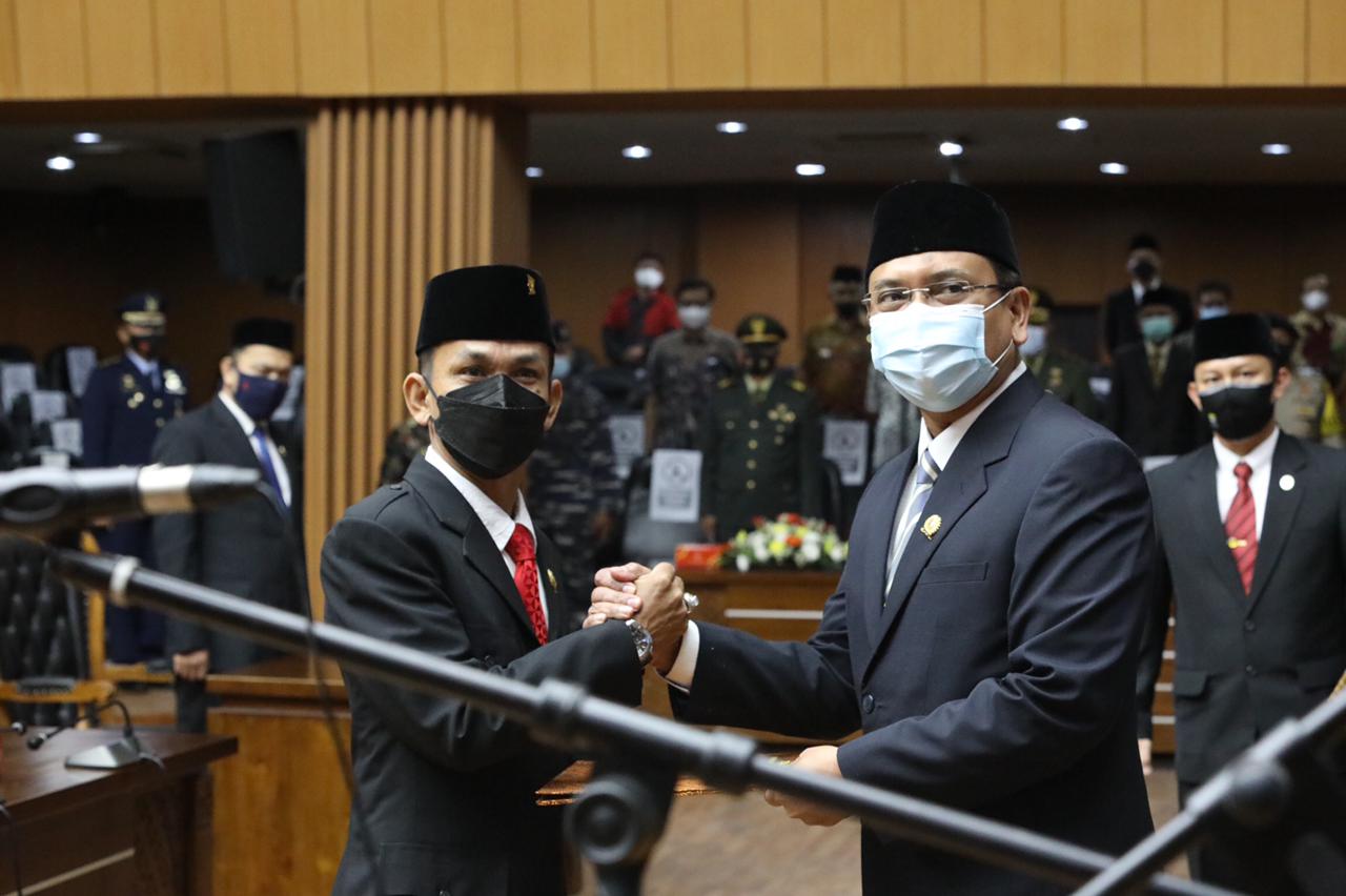 bdgtoday.com/ KOTA BANDUNG-Ketua Dewan Perwakilan Rakyat Daerah (DPRD) Kota Bandung, H. Tedy Rusmawan, AT., MM., melantik H. Iwan Darmawan sebagai Pengganti Antara Waktu (PAW) anggota DPRD Kota Bandung dari Fraksi Partai Demokrasi Indonesia Perjuangan masa jabatan 2019-2024 bertempat di Ruang Rapat Paripurna DPRD kota Bandung. Jl. Sukabumi no. 30 Jumat (12/3/2021) .