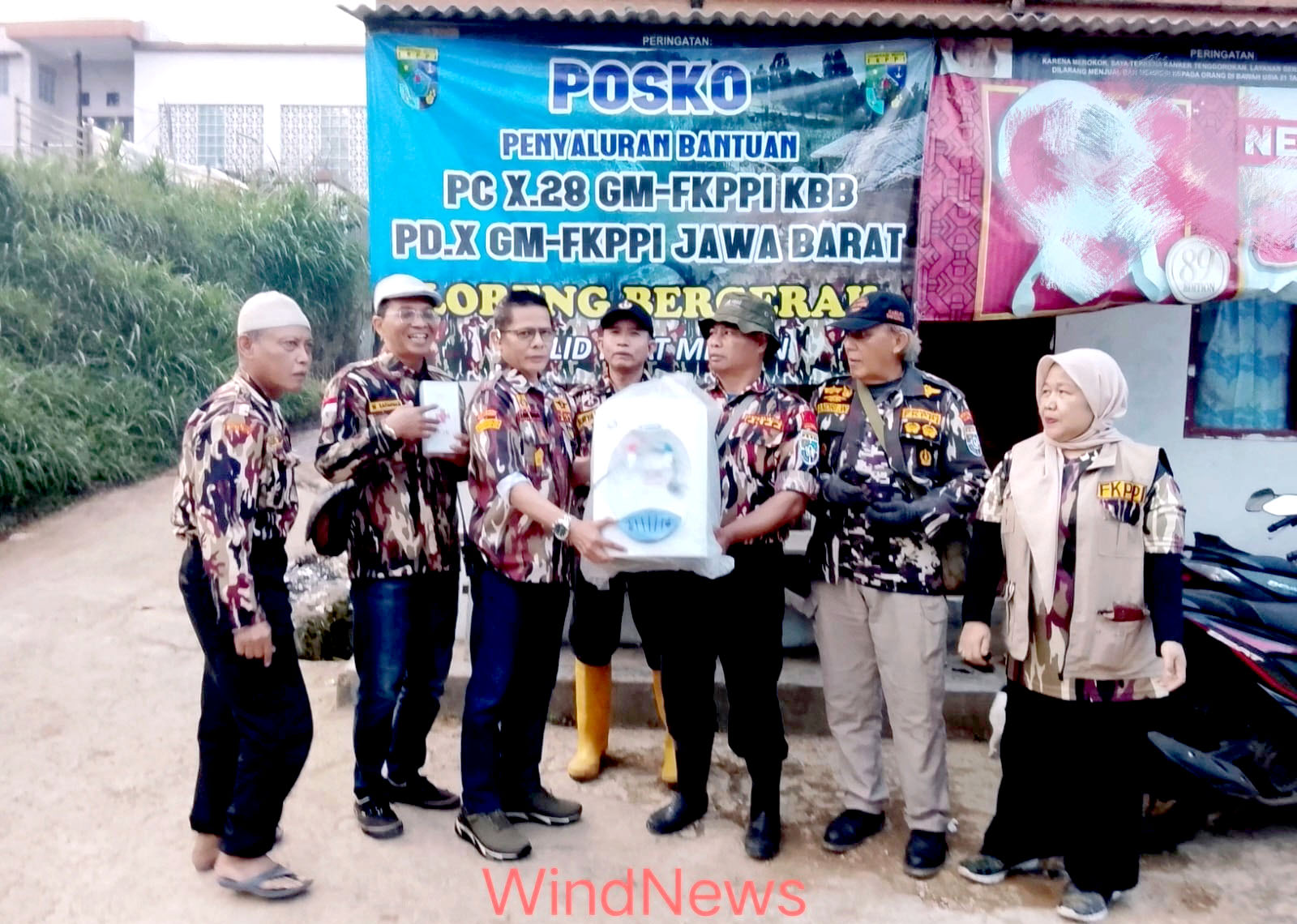 “Ketua Pengurus Daerah (PD) X GM FKPPI Jabar Agus Windu Hanggono bersama jajarannya menyerahkan bantuan yang diterima secara simbolis oleh Ketua Tim Relawan longsor GM FKPPI , Dadang Asmuransyah sebagai Pengurus Cabang X -28 GM FKPPI Kab. Bandung Barat Bersama jajarannya yang bertugas di Posko Penyaluran Bantuan Korban Longsor di KBB Jawa Barat. Bantuan seperti makanan dan minuman serta peralatan sangat dibutuhkan untuk para relawan evakuasi pencari korban tanah longsor di Desa Pasirlangu Kecamatan Cisarua Kab. Bandung Barat.