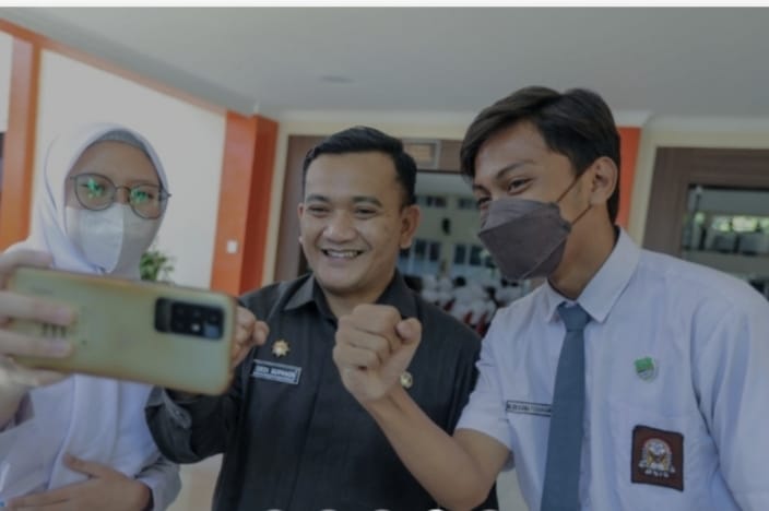 Bdgtoday.com/ BANDUNG – Kepala Dinas Pendidikan (Kadisdik) Jawa Barat (Jabar), Dedi Supandi menyematkan tanda peserta Pengenalan Lingkungan Sekolah (PLS) kepada peserta PLS pada pembukaan PLS 2022-2023 Jabar di SMKN 3 Bandung, Kota Bandung, Senin (18/7/2022).